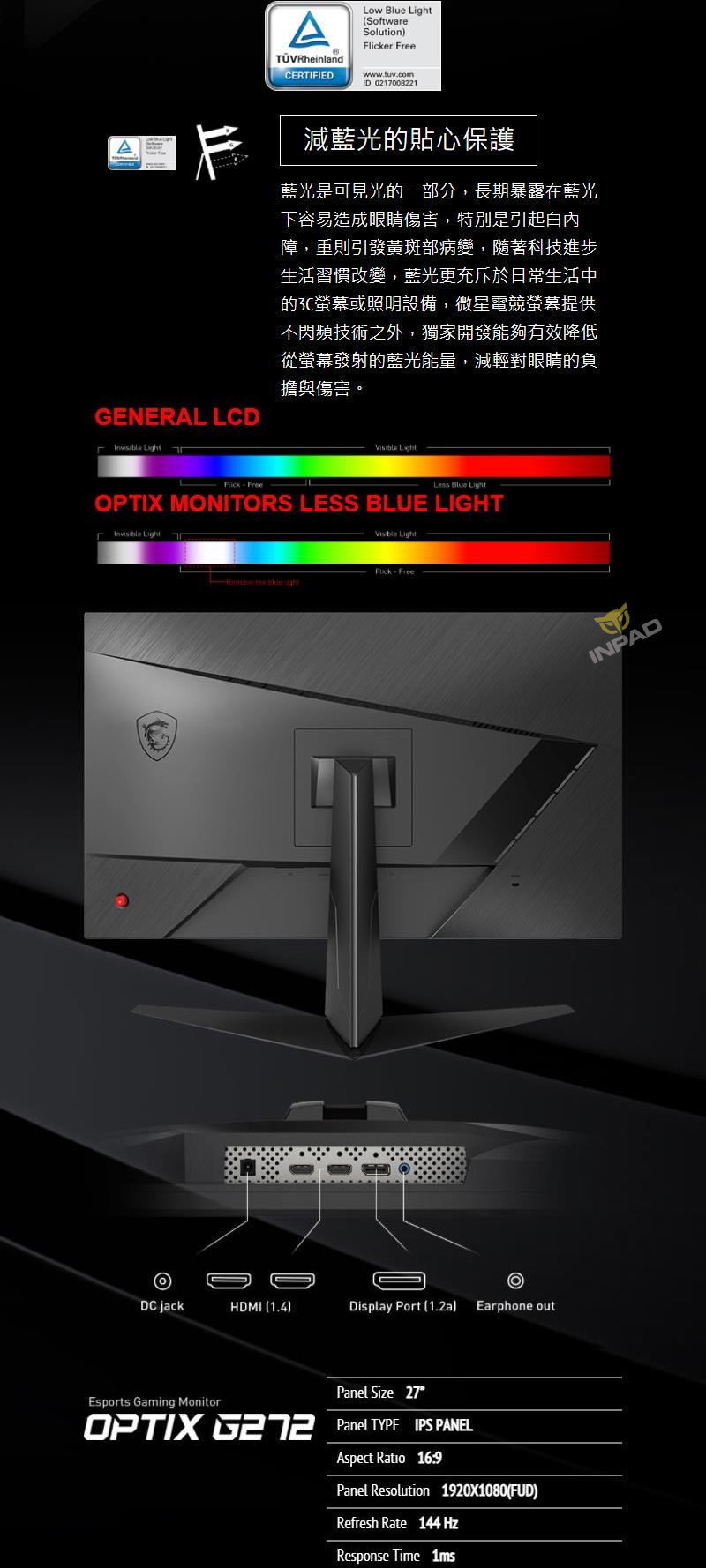 | 品名: | MSI 微星 Optix G272 27吋IPS電競螢幕 |