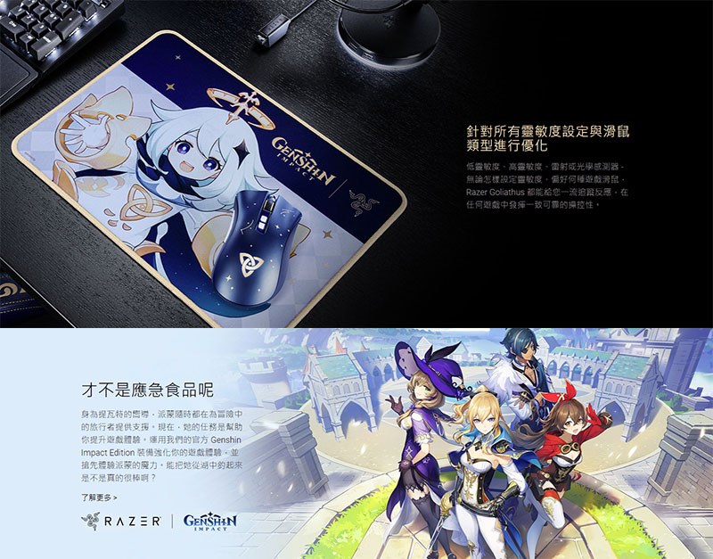 | 品名: | Razer 雷蛇 重裝甲蟲 速度版鼠墊(中) 原神聯名款 |