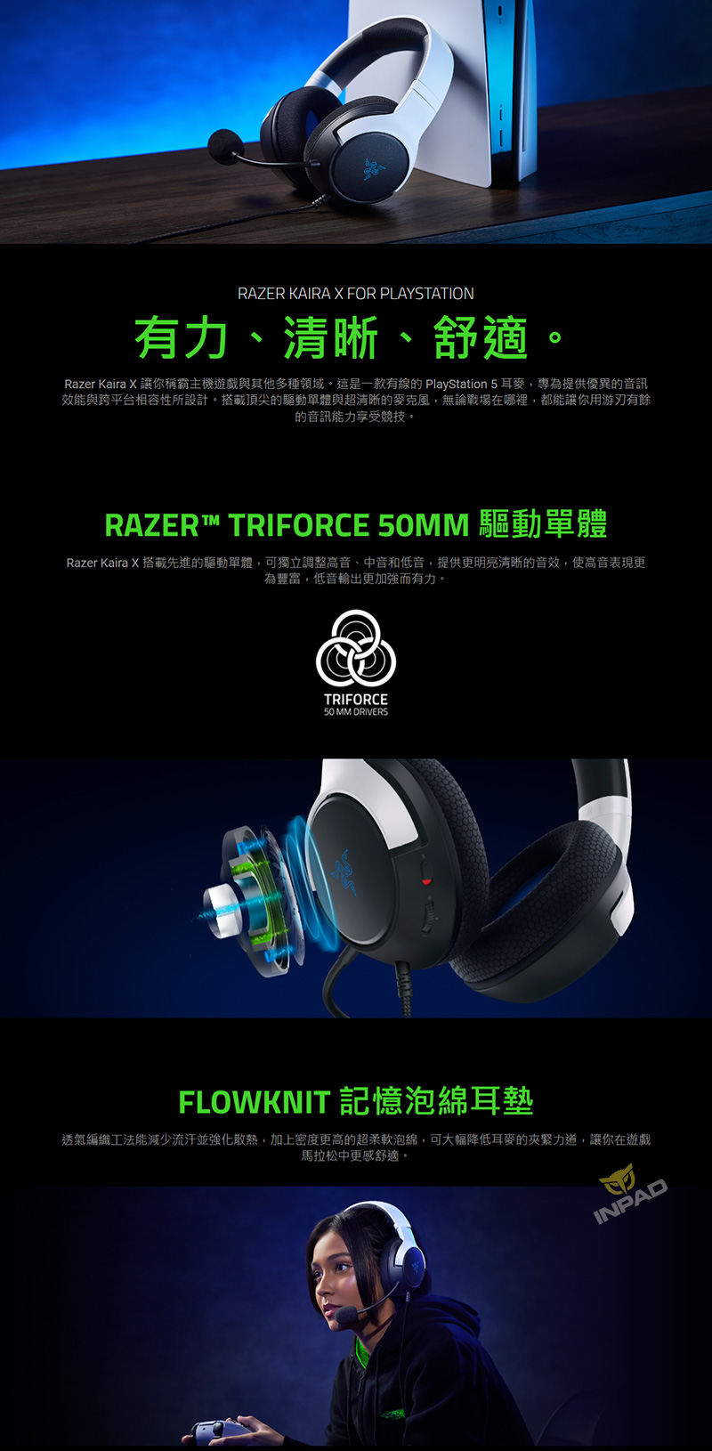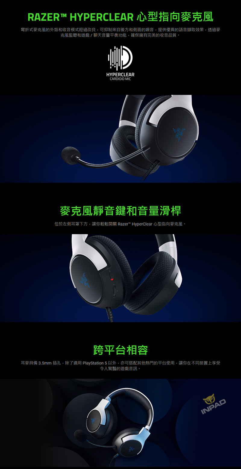 Razer 雷蛇 Kaira X PS5 有線耳機麥克風 黑白藍