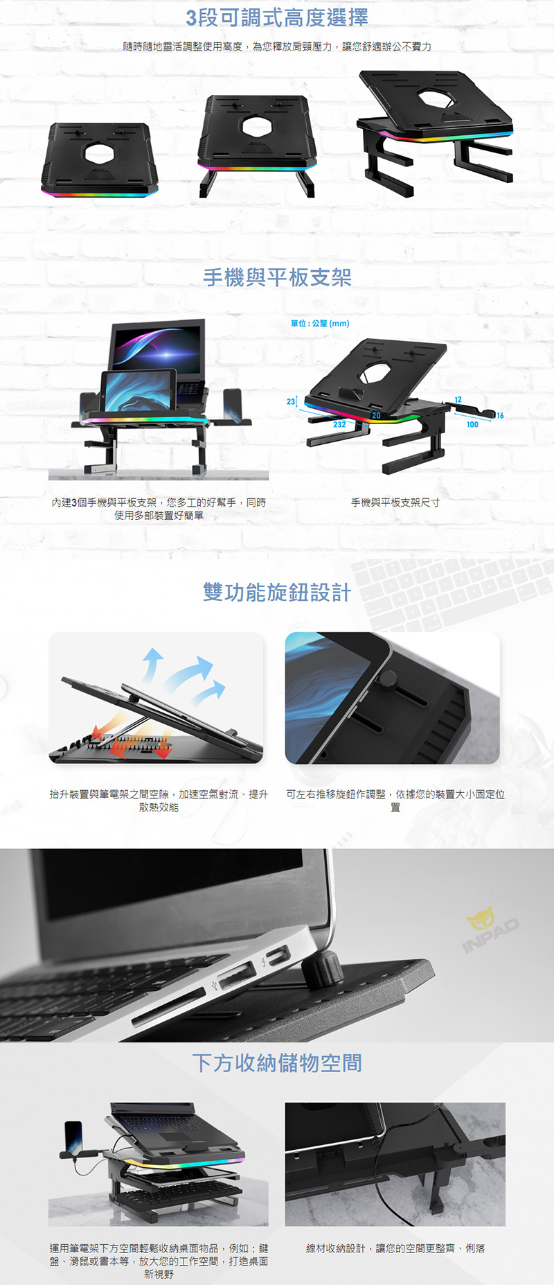 | 品名: | ENERMAX 安耐美 R.T.STAND RGB多功能筆電增高架 |