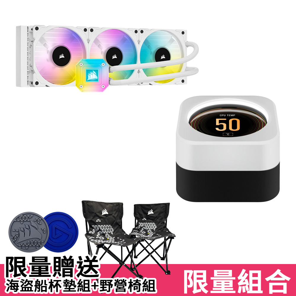【套餐】Corsair海盜船iCUE H150i ELITE CAPELLIX 360mm水冷散熱器+iCUE ELITE LCD 水冷升級套件白色