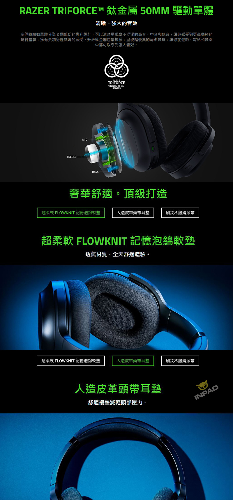 | 耳機單體: | Razer™ TriForce 鈦金屬 50 mm |
