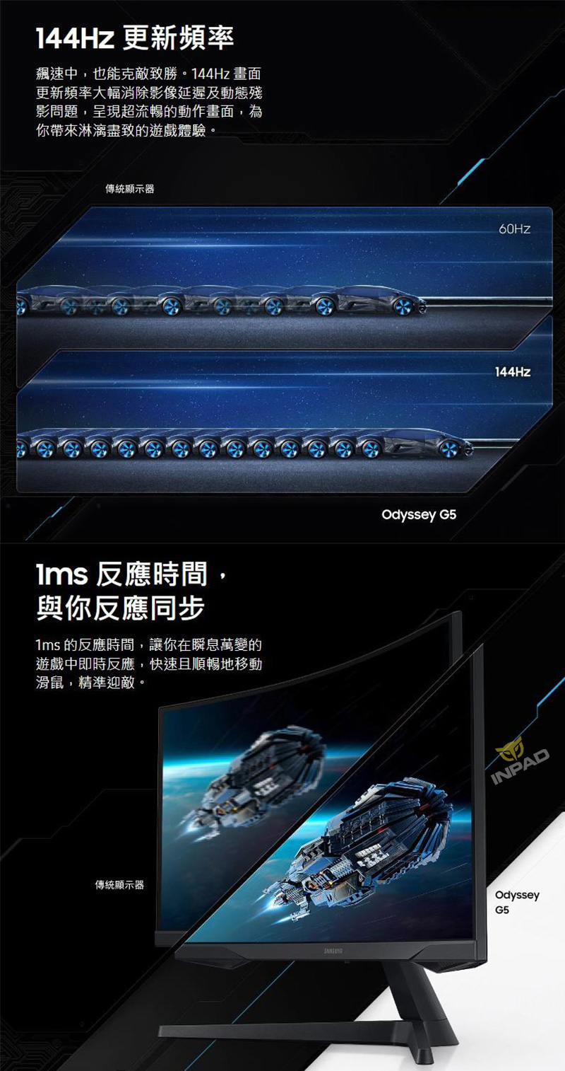 | 品名: | SAMSUNG三星 Odyssey G5 27吋 1000R 曲面螢幕 |
