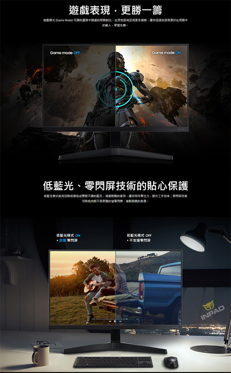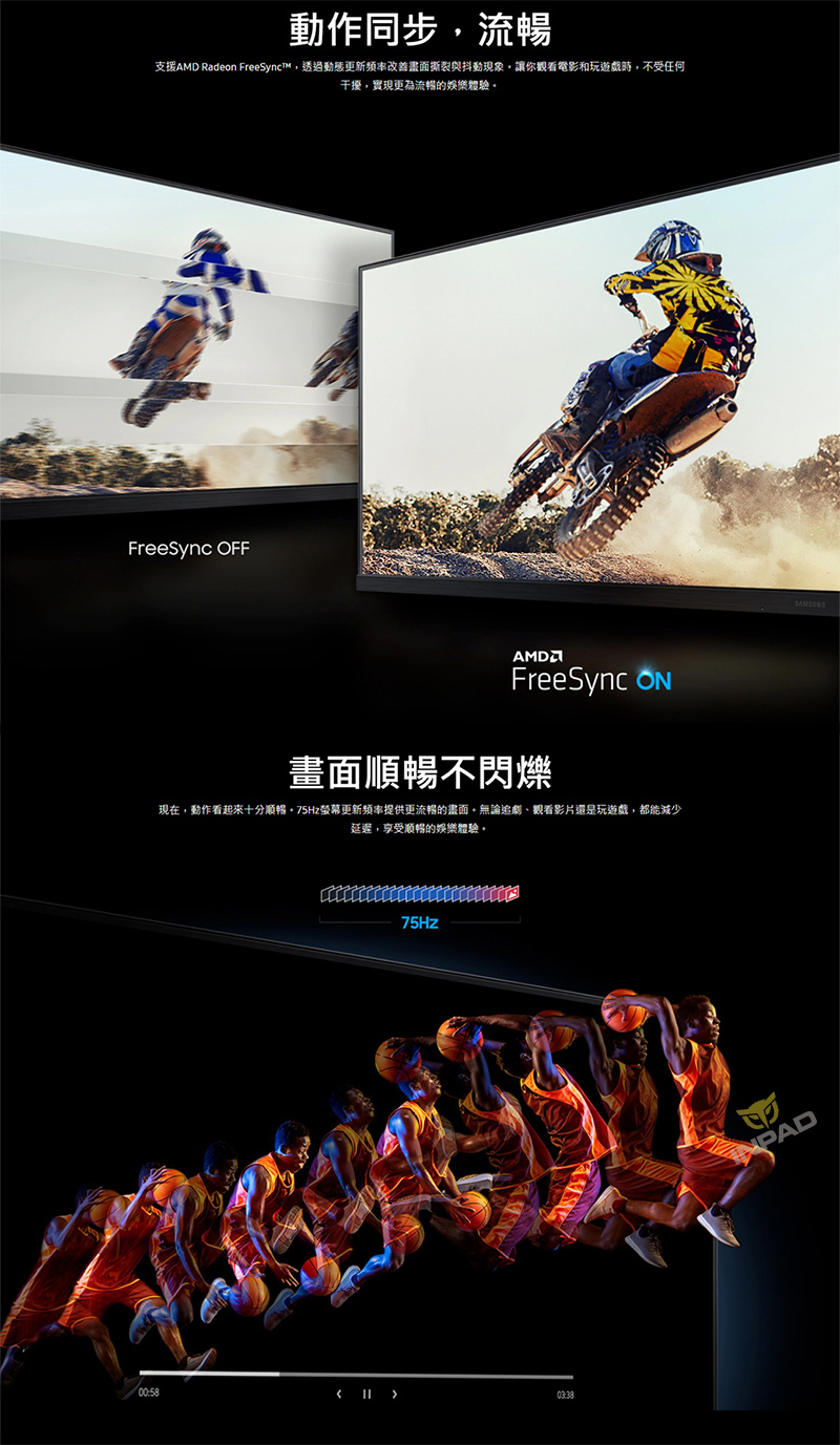| 特殊功能 : | 省電模式自由選 低藍光模式 零閃屏 遊戲模式 Windows 認證 FreeSync Off Timer Plus |