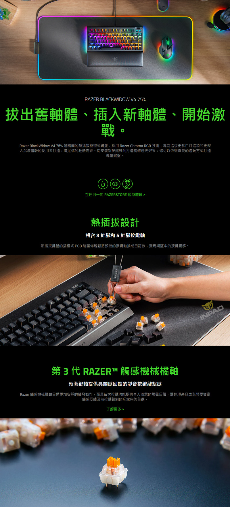 Razer 雷蛇 BlackWidow V4 黑寡婦蜘蛛幻彩版75% 機械式鍵盤 橘軸 英文 黑色