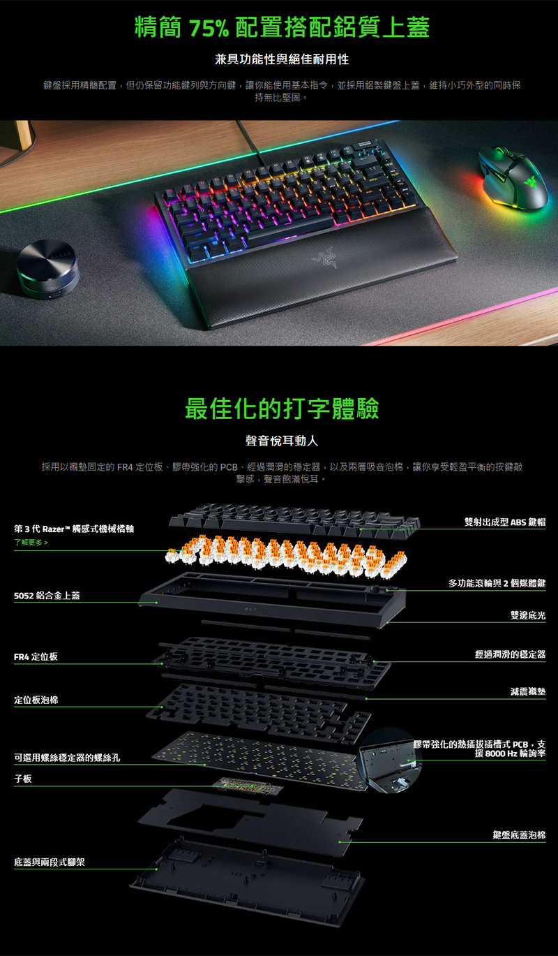 | 品名: | Razer 雷蛇 BlackWidow V4 黑寡婦蜘蛛幻彩版75% 機械式鍵盤 |