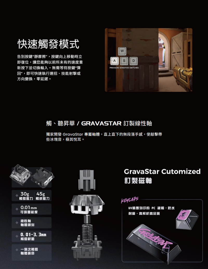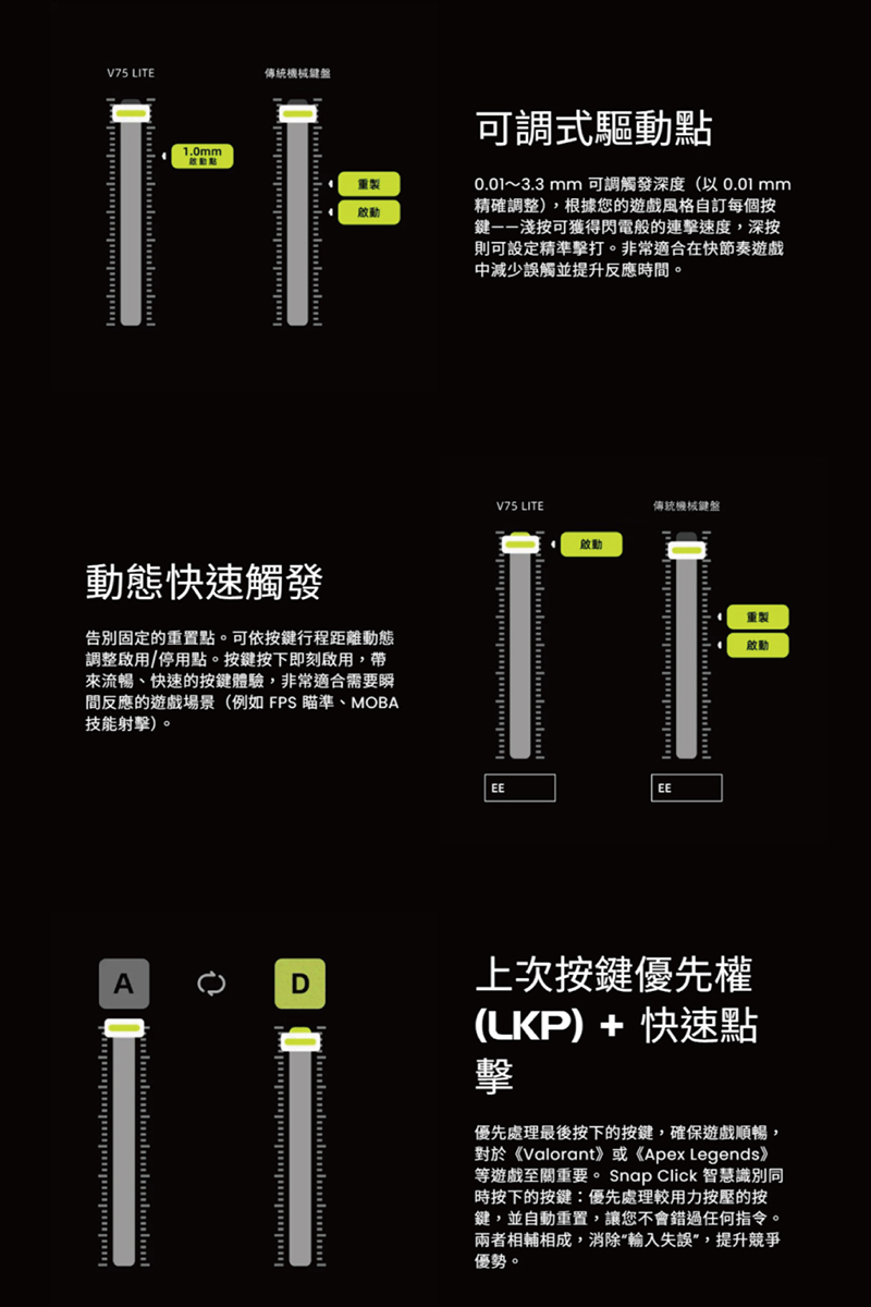 7、急停瞬動,Rapid Trigger 技術,移動、點擊更迅捷