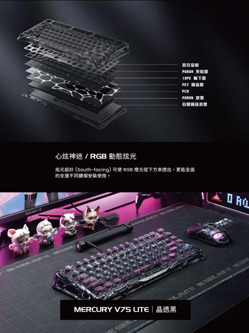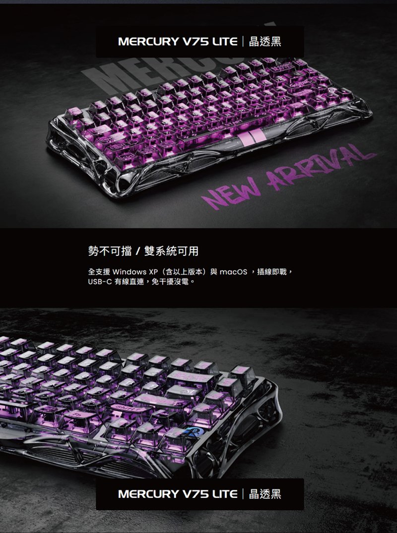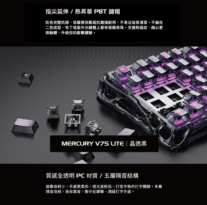 GravaStar Mercury V75 LIte磁軸鍵盤 有線 英文 晶透黑