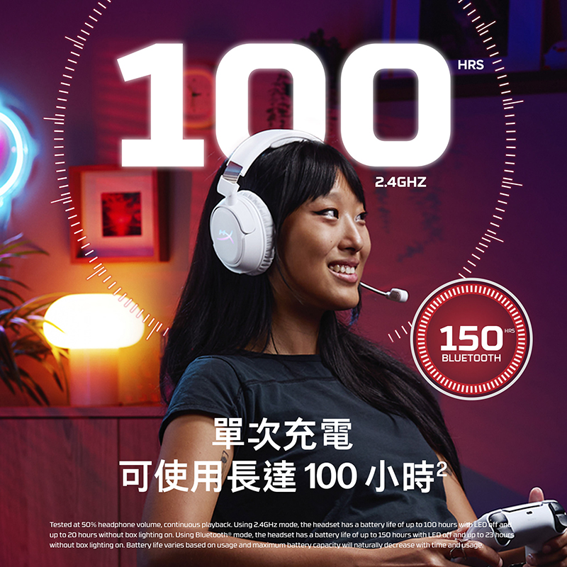 5、最高100小時2.4GHz無線續航,或150小時藍牙使用