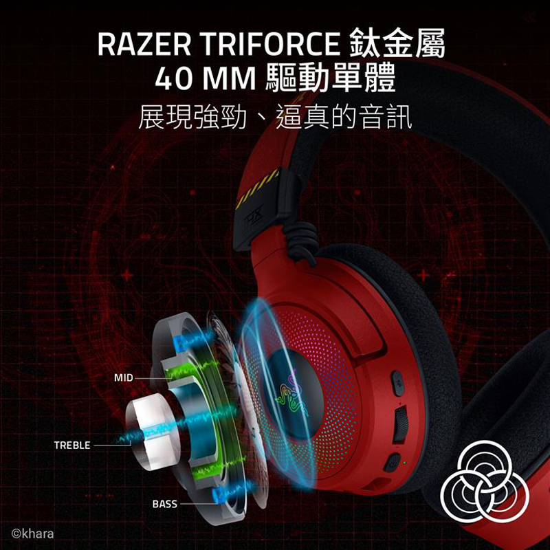 | 耳機單體: | 40 mm Razer TriForce 鈦金屬 |